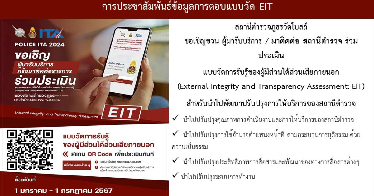 ขอเชิญชวนประชาชนร่วมตอบแบบประเมินคุณธรรมและความโปร่งใส่ในการดำเนินงานของหน่วยงานภาครัฐ