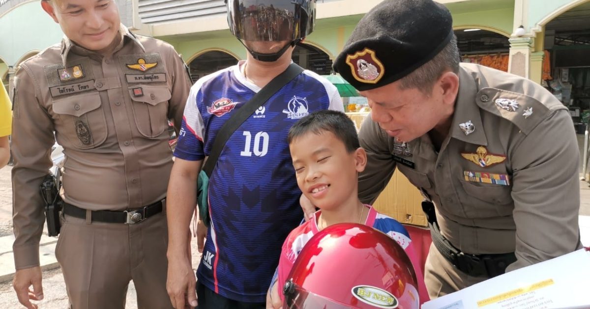 รับหมวกกันน็อก” โดยว่ากล่าวตักเตือนผู้ขับขี่รถจักรยานยนต์ที่ไม่สวมหมวกนิรภัย