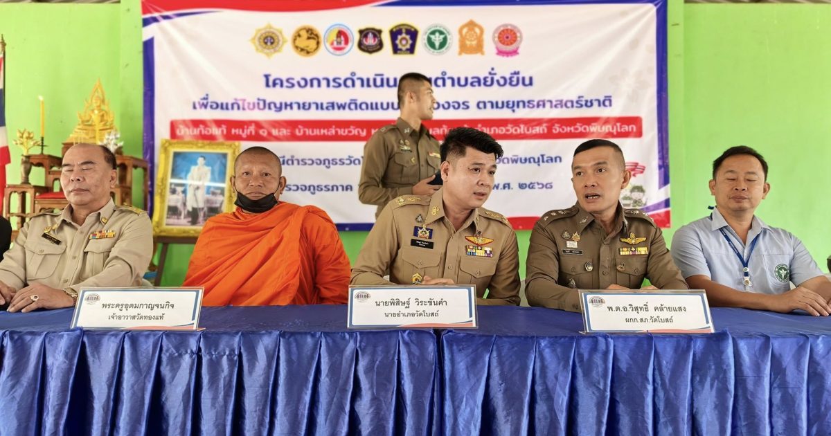 ชุมชนยั่งยืนพลิกฟื้นแก้ไขปัญหายาเสพติด 18/03/2568 โดย WatbotAdmin / ข่าวภารกิจผู้บังคับบัญชา วันที่ 18 มี.ค. 68 เวลา 09.30 น. พ.ต.อ.วิสุทธิ์ คล้ายแสง ผกก.สภ.วัดโบสถ์ พร้อมด้วยข้าราชการตำรวจ สภ.วัดโบสถ์และ นสต.ฝึกหัดปฏิบัติราชการ จัดทำพิธีเปิดโครงการดำเนินงานตำบลยั่งยืนเพื่อแก้ไขปัญหายาเสพติดแบบครบวงจรตามยุทธศาสตร์ชาติ ประจำปีงบประมาณ 2568 ณ ศาลาอเนกประสงค์(อบต.ท้อแท้) โดยมีนายพิสิษฐ์ วิระขันคำ นายอำเภอวัดโบสถ์ เป็นประธานในพิธี FacebookFacebookXXLINELine