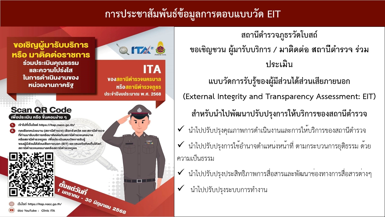 สถานีตำรวจภูธรวัดโบสถ์ ขอเชิญชวน ตอบแบบวัดการรับรู้ของผู้มีส่วนได้ส่วนเสียภายนอก (EIT) วันที่ 10 ม.ค