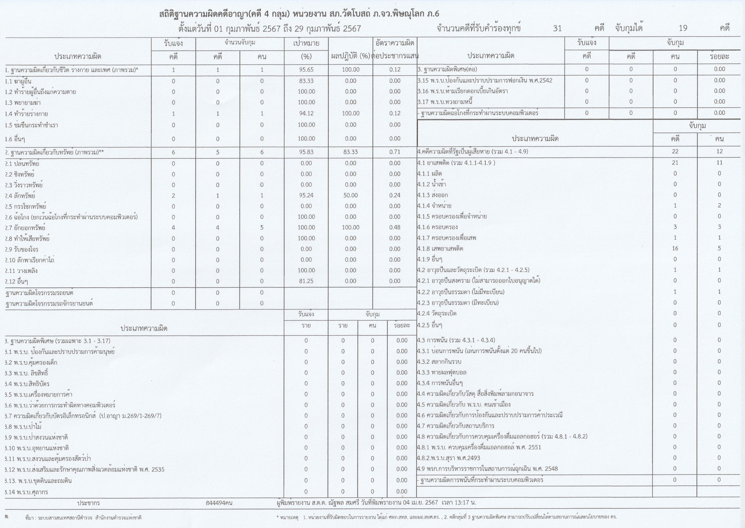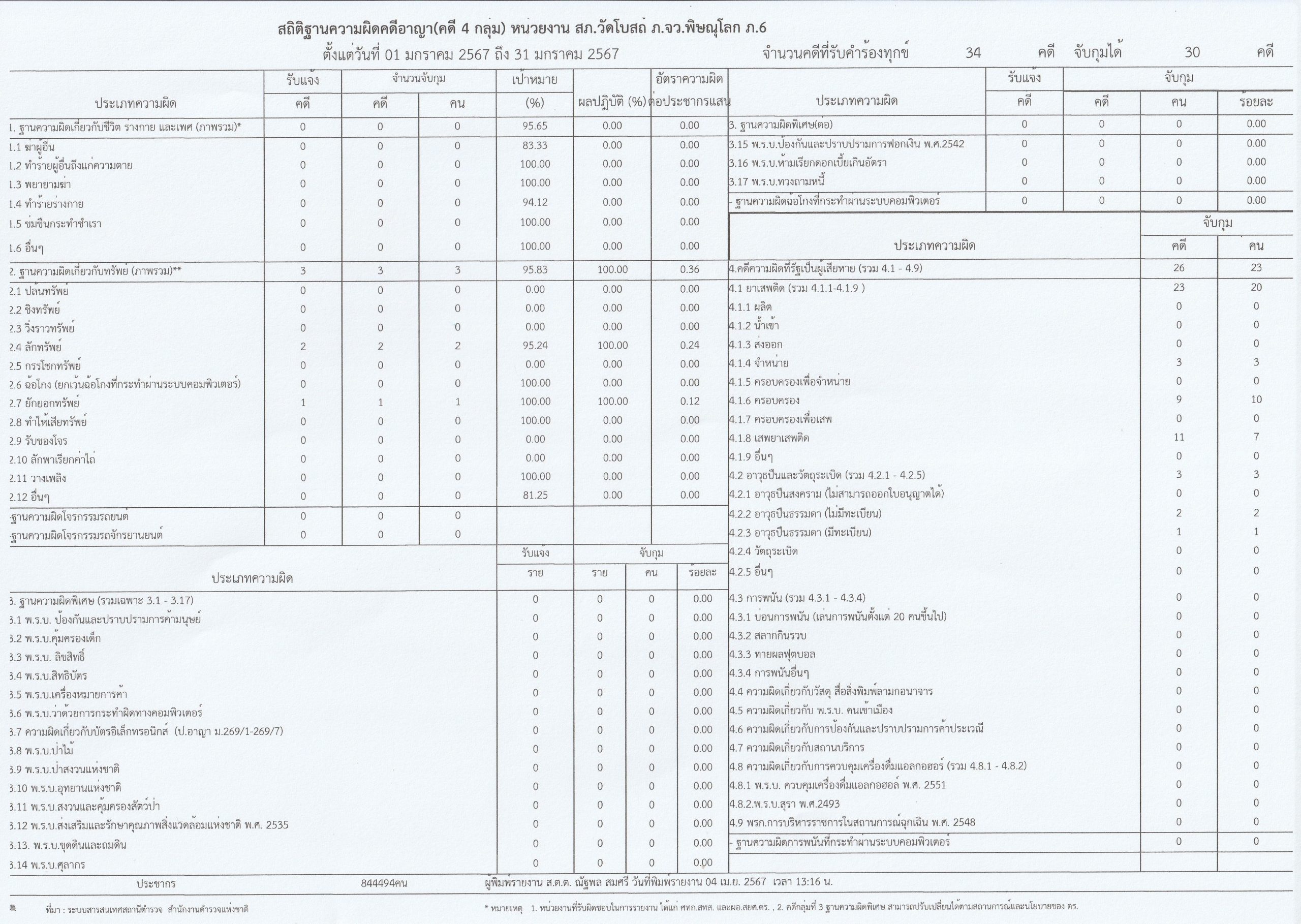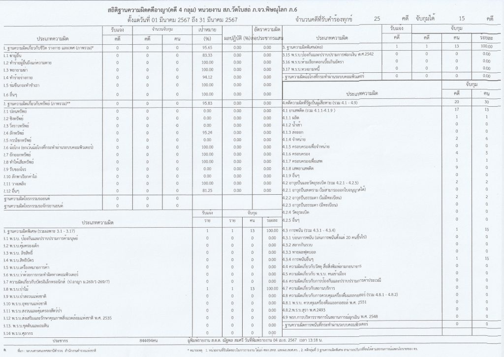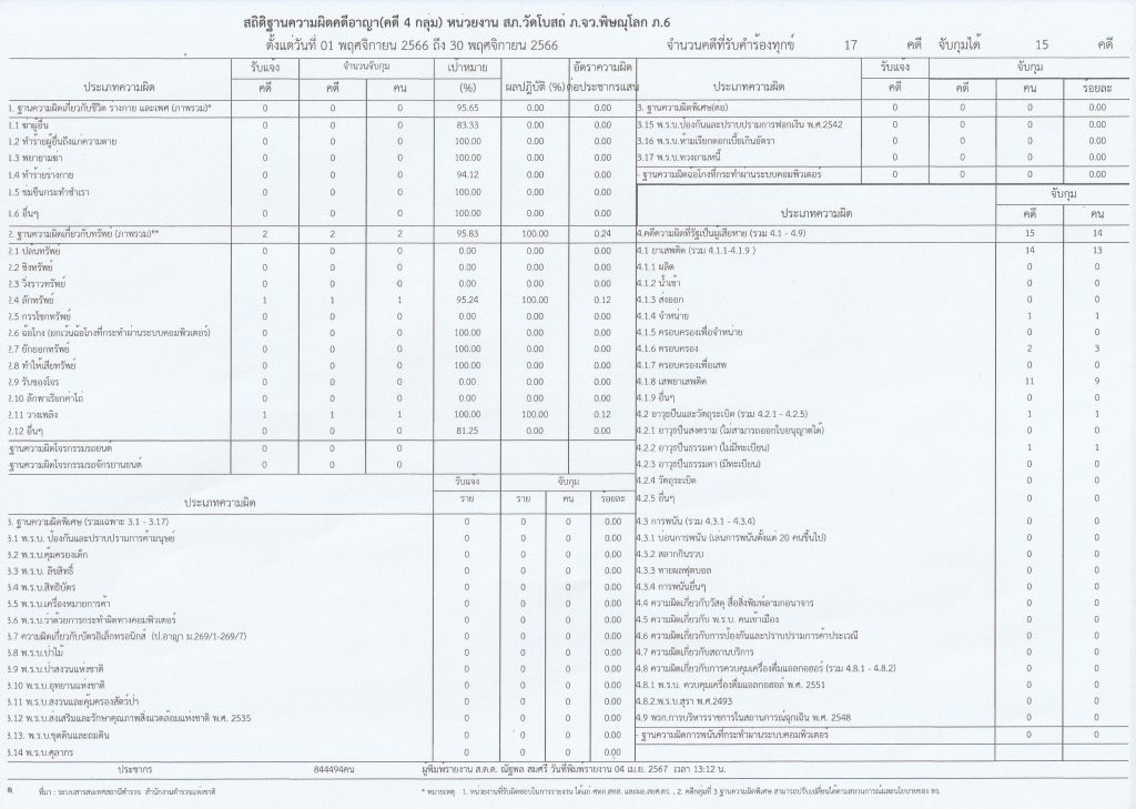 ผลการดำเนินงานเชิงสถิติคดีอาญา 4 กลุ่ม