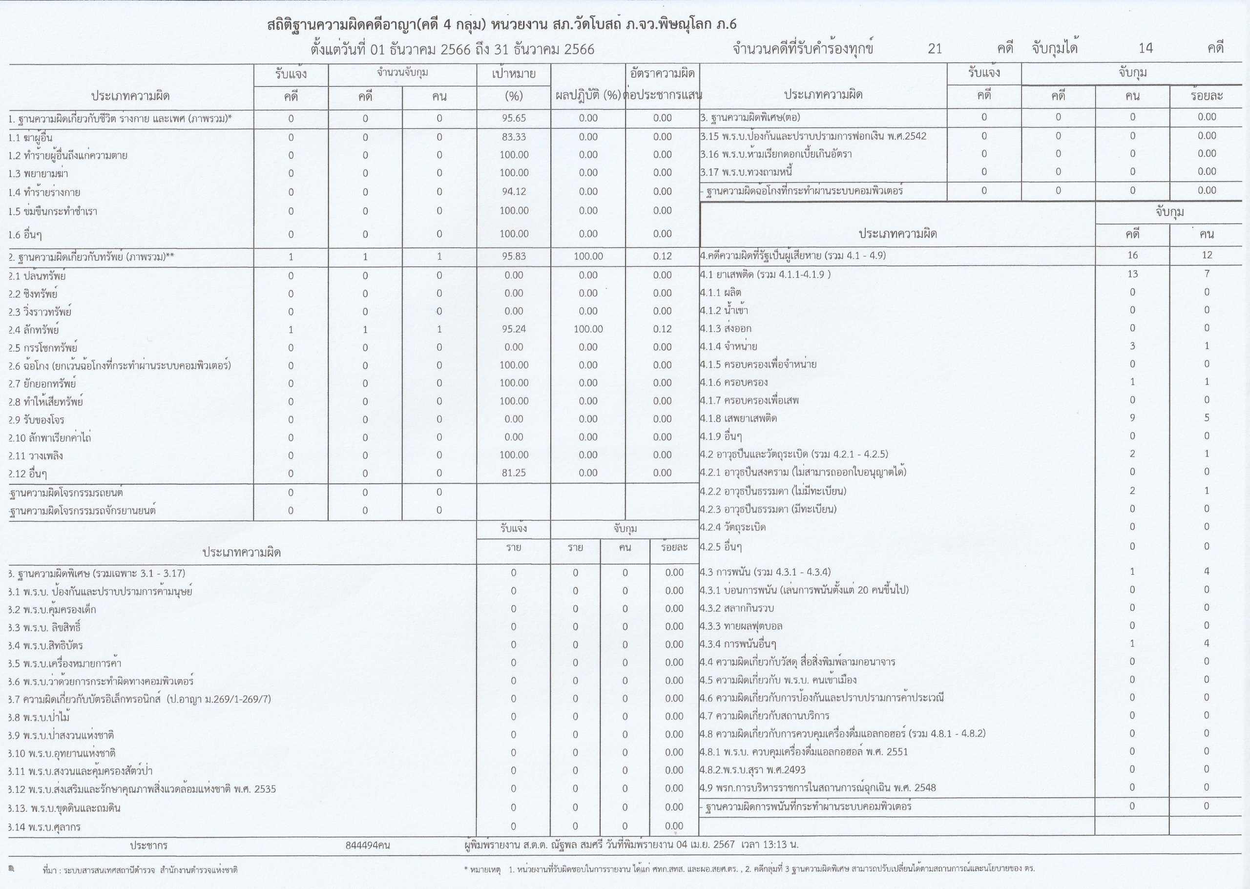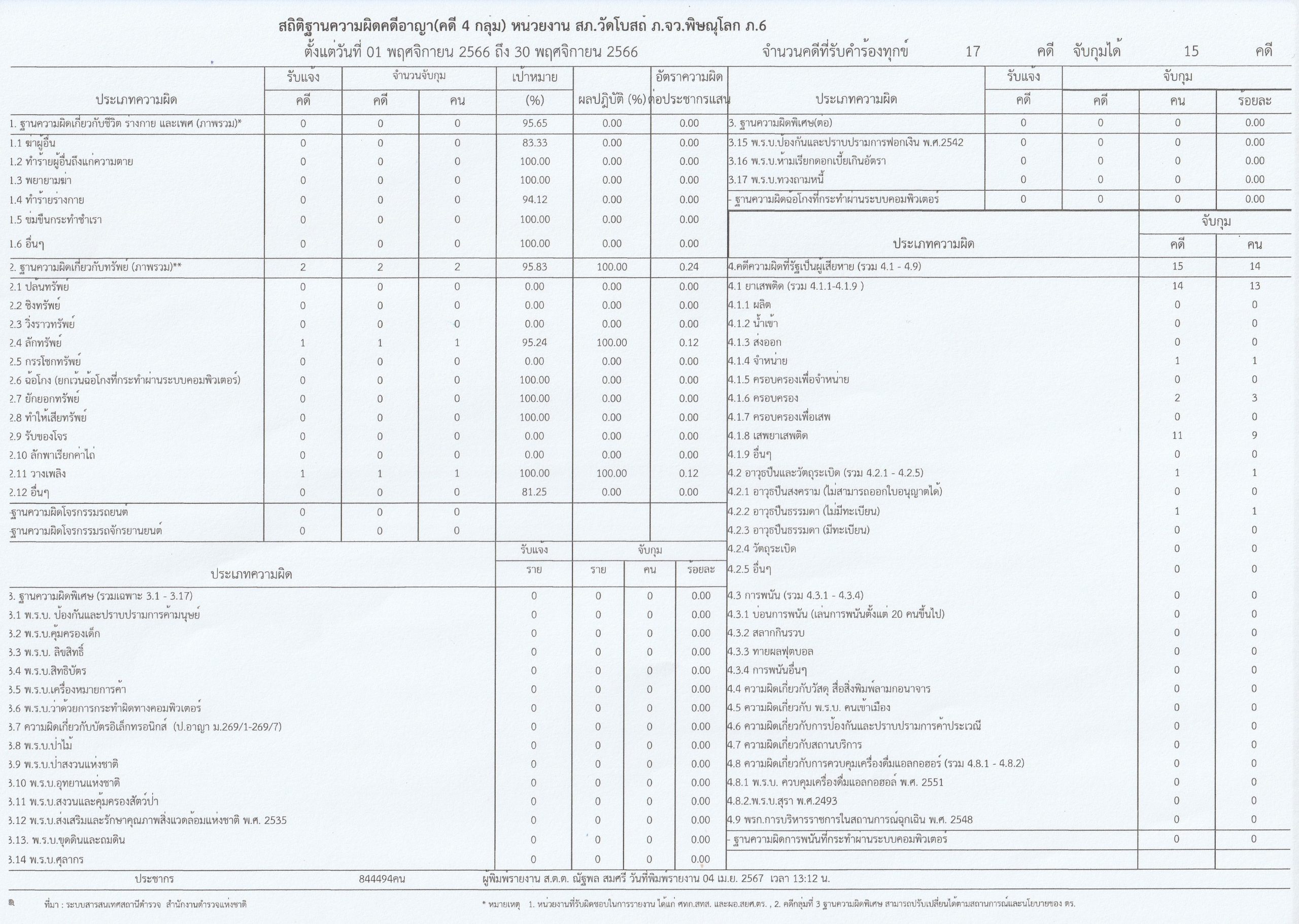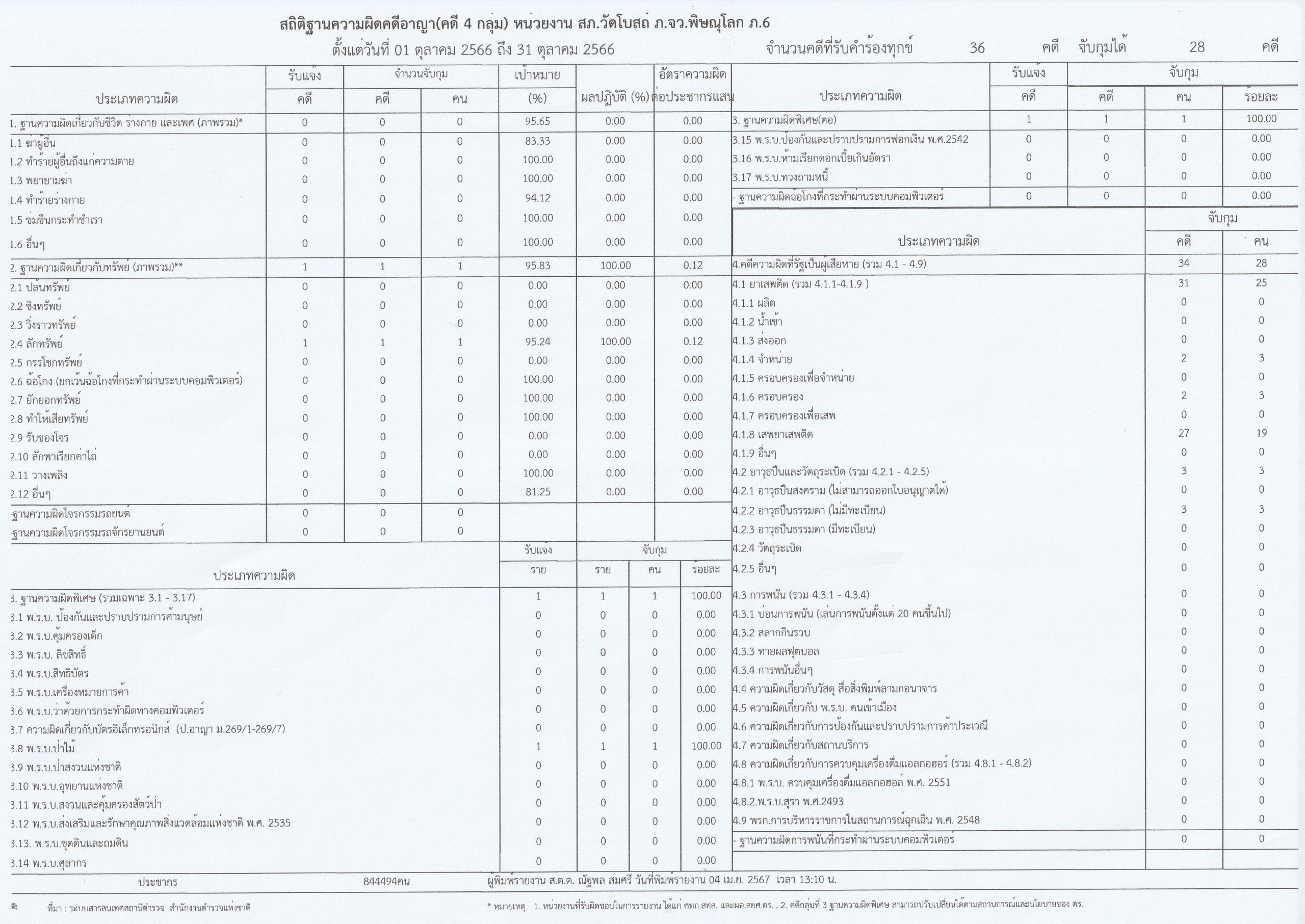 ผลการดำเนินงานเชิงสถิติคดีอาญา 4 กลุ่ม
